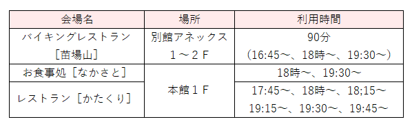 3ヶ所のレストランで夕食を食べる事が出来ます。