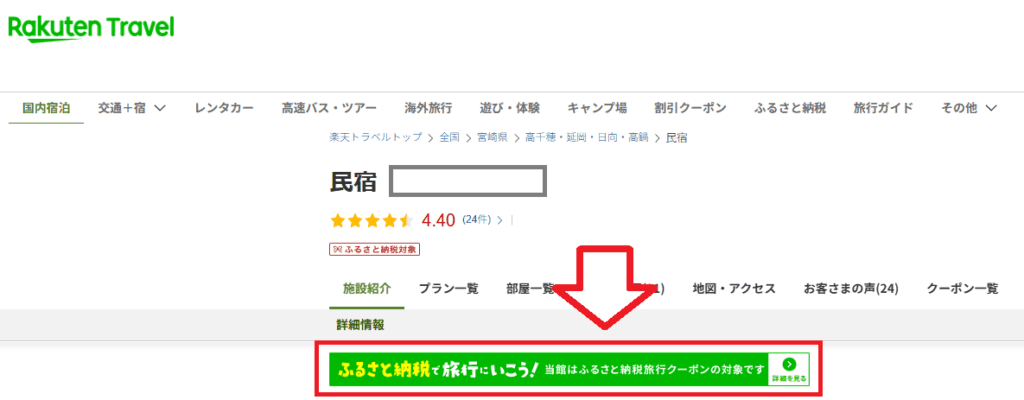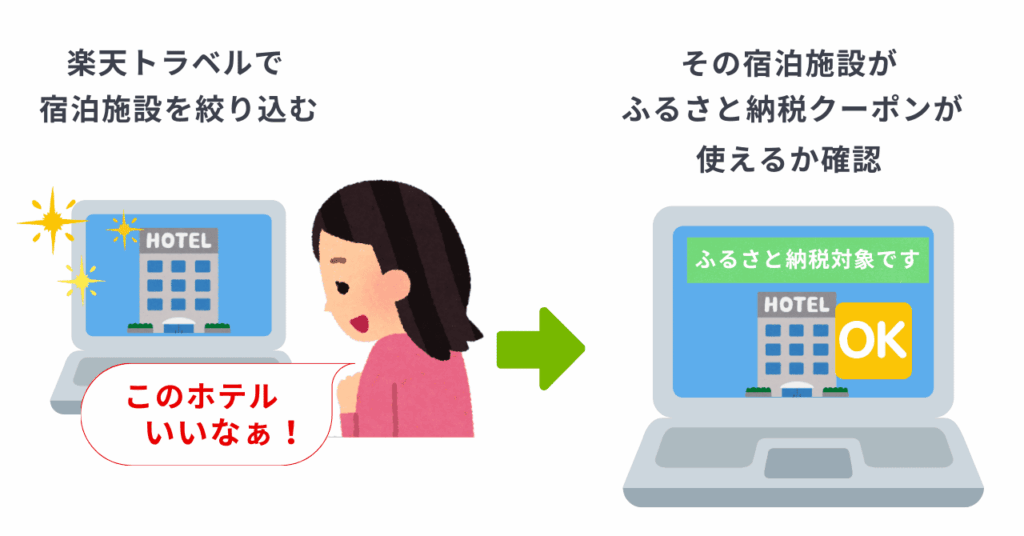 楽天トラベルにある泊まりたい宿泊施設で、ふるさと納税クーポンが使えるか確認する方法
