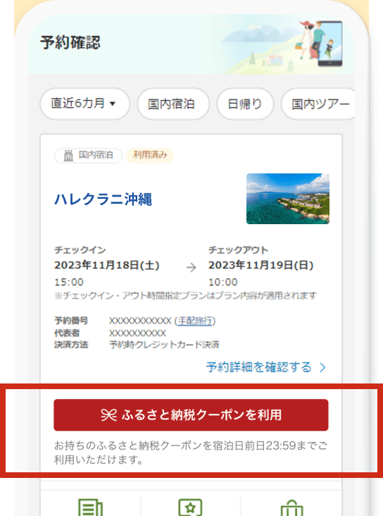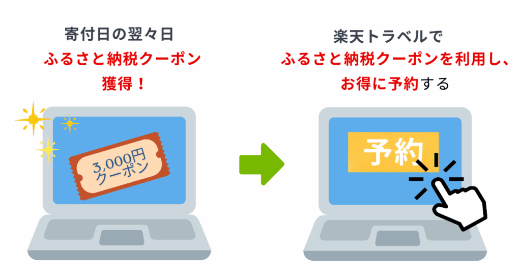 楽天ふるさと納税で得たクーポンは、楽天トラベルで予約時・予約したあとから、どちらでも利用可!