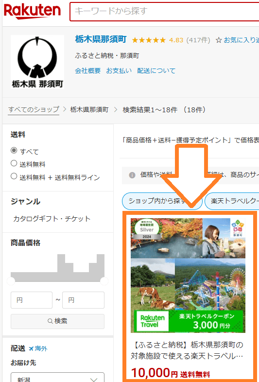楽天ふるさと納税で、