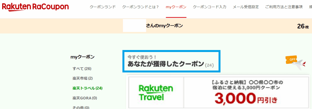 他に獲得済の自治体クーポンをお持ちの方は、