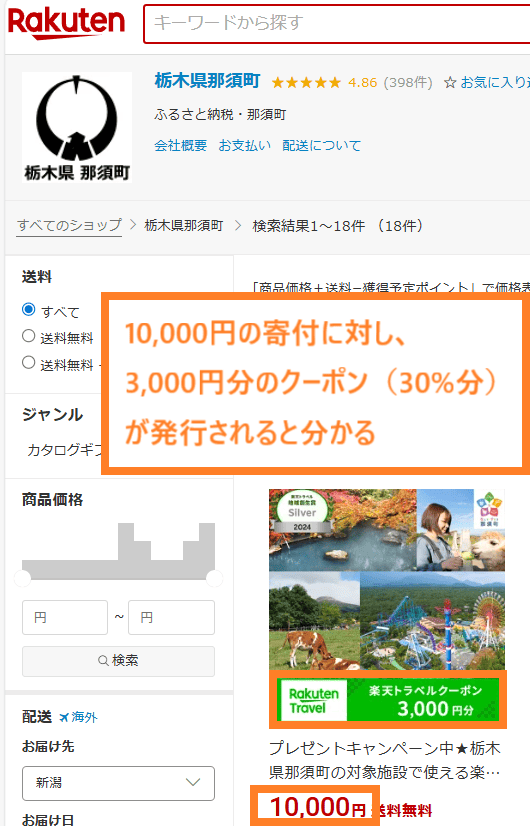 楽天トラベルで使える[ふるさと納税クーポン]の詳細