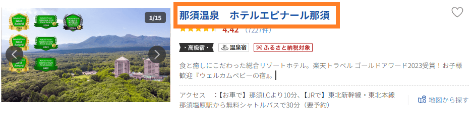 楽天トラベル内の、各宿泊施設のトップページに
