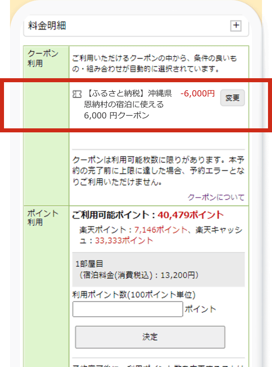 ふるさと納税クーポンを、楽天トラベルの[予約時]に利用し、ホテル等に安く泊まる方法
