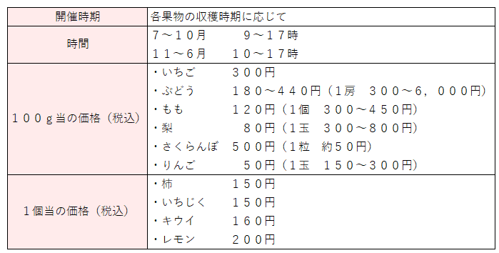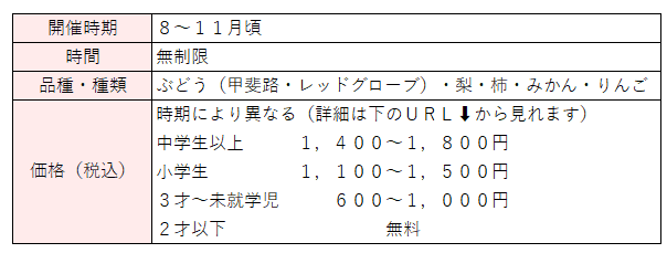 白根グレープガーデンのレビュー[収穫時期・収穫出来る果物一覧表]